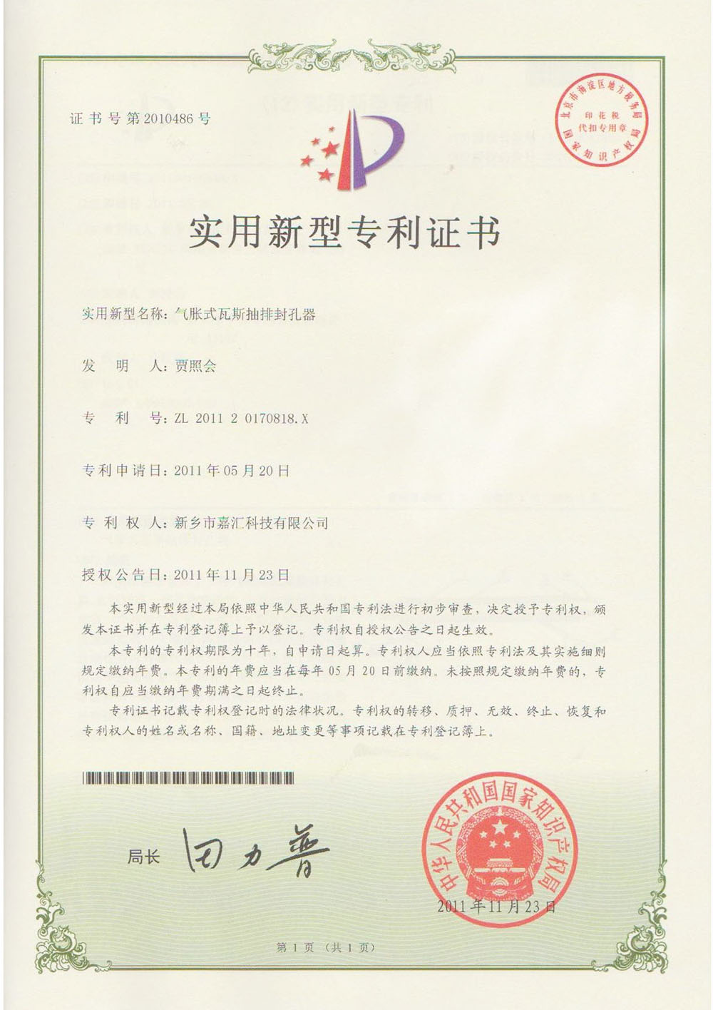 注漿封孔器專利